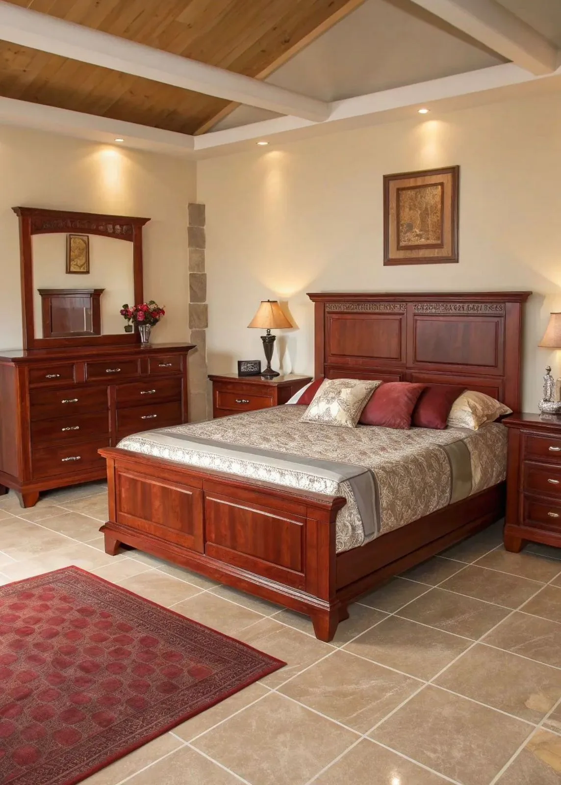 Transform your bedroom into a sanctuary of style and comfort with the Nobu Mahogany Bed with Bedside Tables from Mobiliya Furniture. Order yours today and experience the difference!