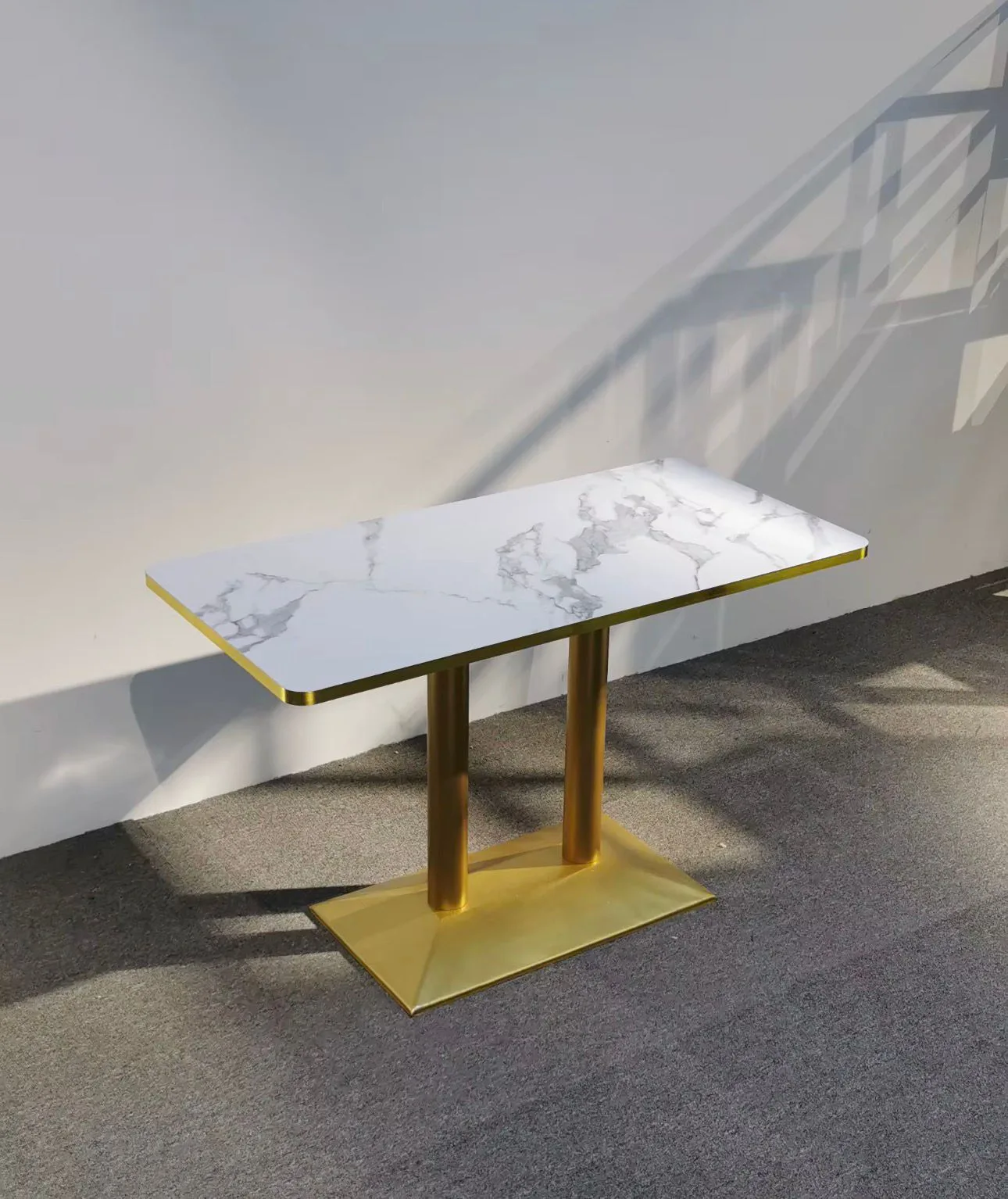Rectangular Restaurant Table with Gold Legs and Marble/Ceramic Tile Top